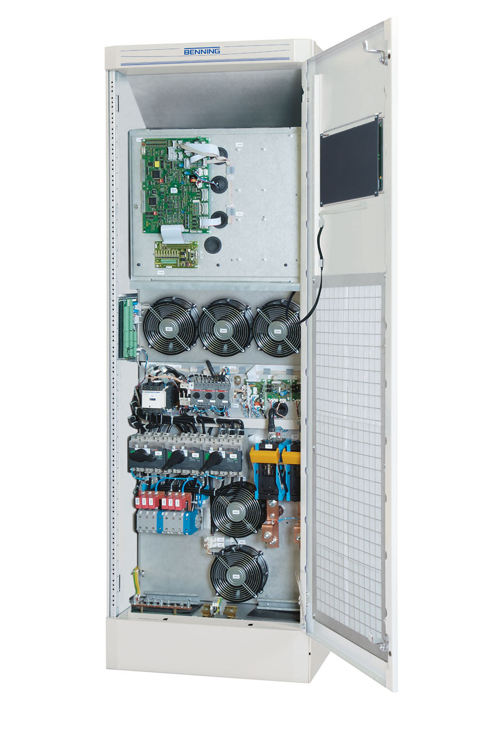 For the supply of power to consumers requiring AC power which is independent of faults arising on the public grid, BENNING offers very robust, single-phase and three-phase inverter systems – in the form of the INVERTRONIC power inverter – for the tough applications that come up in industry, typically for: